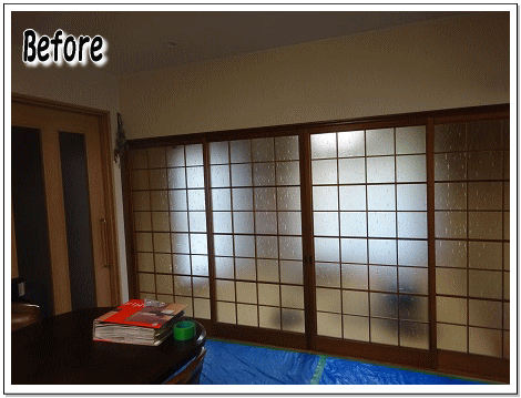 ダイニングとの取り合いの4枚引き戸を2枚の引き分け戸へとリフォームし、